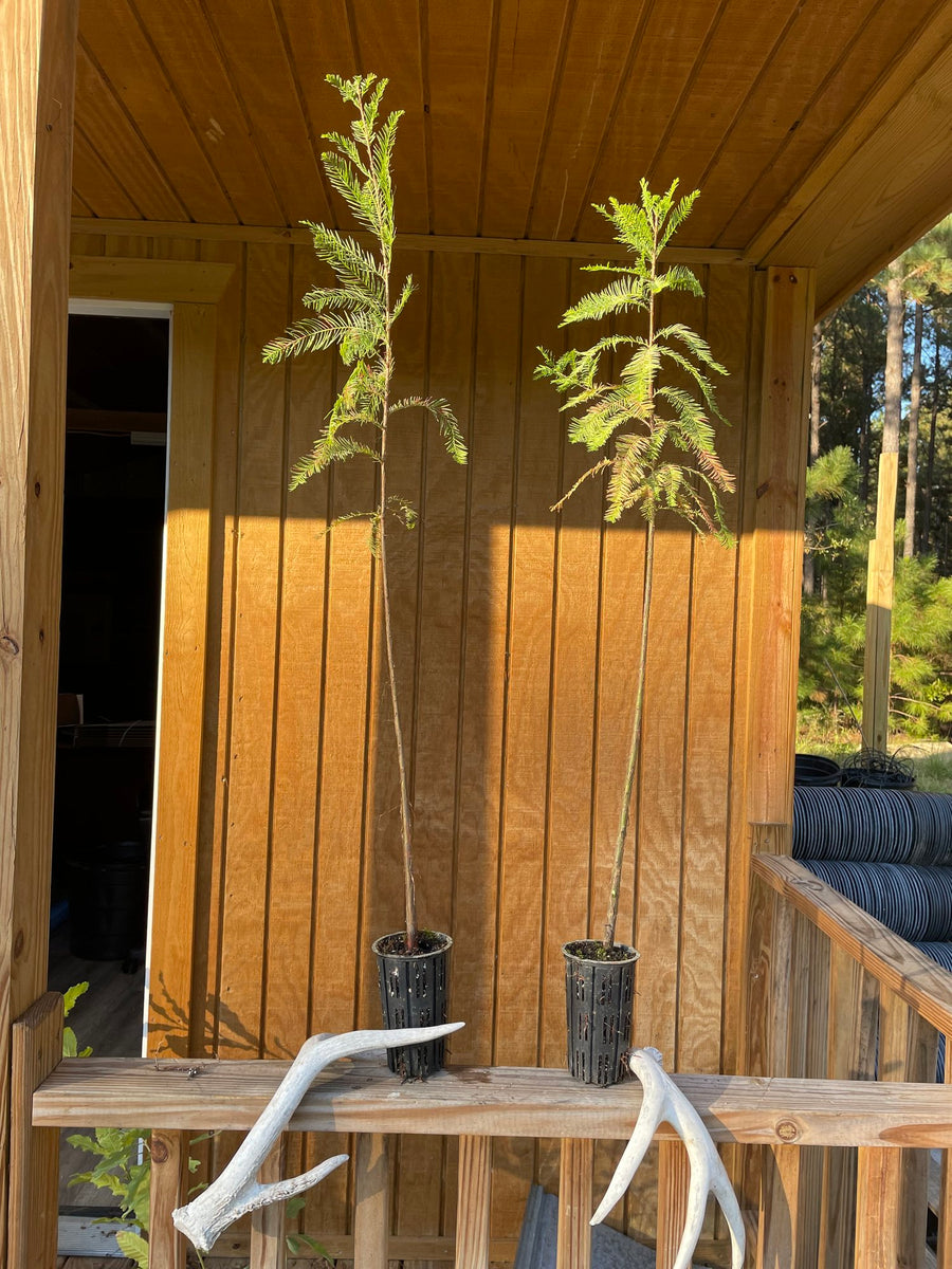 The Bald Cypress is an iconic southern species, often recognized for its wide, spreading base and ability to thrive in standing water. While the Bald Cypress will grow in standing water, it will also thrive in a wide range of soils including well-drained upland soils. It’s beauty and hardiness in a many environments has led to it becoming a popular ornamental selection. Looking for some cover in your duck pond? You’ll be impressed with how fast our bald cypress seedlings will take off.
